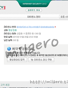 Kaspersky Internet Security 2012 2년 라이선스 구매 안녕하세요, milaero입니다. Kaspersky Internet Security 2012 2년 라이선스를 카스퍼스키에게 어둠으로 2011을 써온 보답으로 2년 결재를.. ㅡ,.ㅡ;; (라는것은 비밀;;) 만족하네요 그럭저럭.. 증거사진.. -0-;; 음.. 추가로 'WinZip 15 Standard Korean 1월 26일부터 1년 라이선스'를 얻게 되었는데..:) 2012. 1. 26.